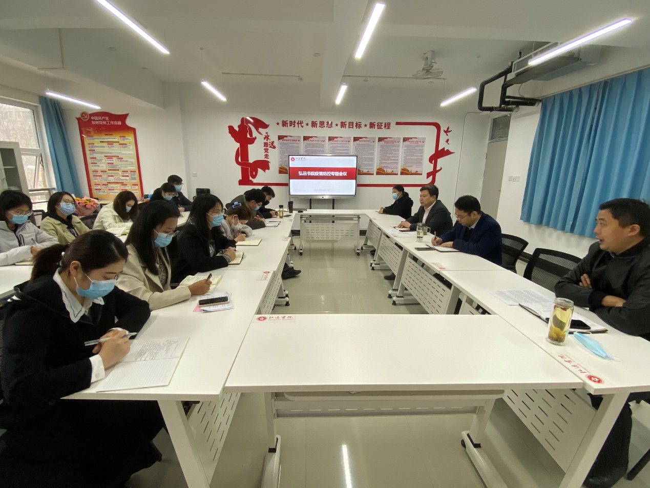 3月14日上午,弘远书院在党建会议室召开疫情防控专题会议,书院党委书记胡卫东、院长赵贺然,副书记兼副院长陈明和全体辅导员教师参加会议。会议由赵贺然主持。